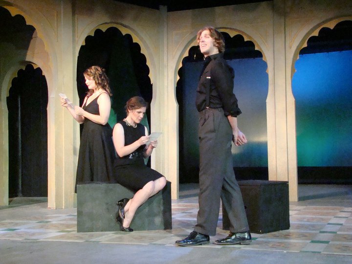 Someone took pictures during the scenes program. Here is the scene from my opera "Everlasting Universe" that contains the duet "Castles in the Air". Mary Shelley (Meaghan Heath) is reading her letter from London while Claire Clairmont (Sarah Bauer) is obsessing over the note she has just found from Lord Byron banning her from the villa. John Polidori (Cameron Young) is introducing the scene before he rifles through Byron's papers, finds Albe's love poetry to his half-sister Augusta and then has an emotional melt-down. As this is a scenes program props are minimal and everyone is wearing stage black.